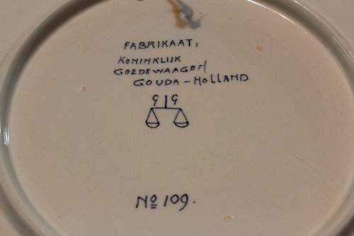25cm in diameter. 1938 commemorative plate of Dingaansvlucht. Issued by KLM, manufacured by "Koninklijk Goedewaagen, Gouda, Holland". Plate no. 109. Good condition (some hairline cracks).