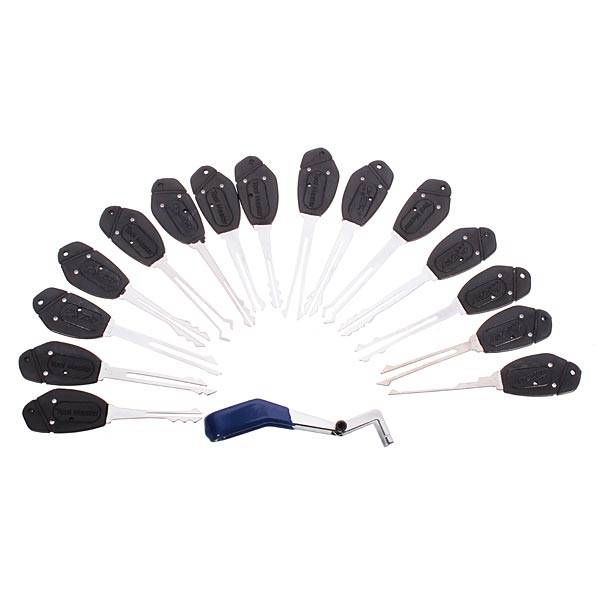 Description : Klom 16pcs Set Deft Hand Lock Pick Tools Lock Opener Suitable for vehicle and door locks, 15 different shape lock picks, dual-head "Y" style tension tool. Cover by a nice durable carry case. Package included : 1 x 16Pcs Lock Picks Tools Set Details pictures :