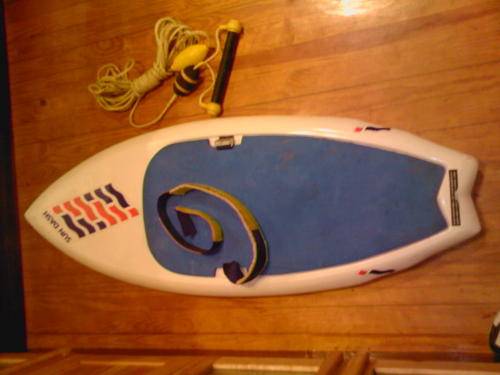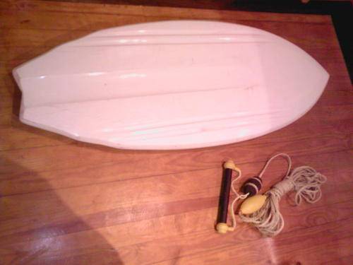 Knee board with rope. Due to size postage or collection must be arranged by buyer, item is in Knysna. If buyer is in Cape Town delivery could possibly be arranged, please discuss with seller. The board is just short of 1.5m long.
