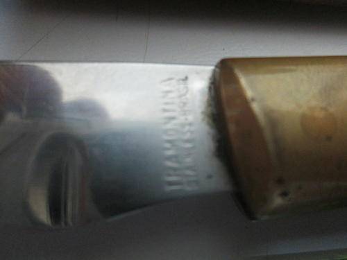 Lovely knife. Sturdily designed and well copper- riveted with copper lower handle plates. Feels good and well balanced in the hand. Beautifull curvature of the blade, especially lower blade at handle. Postage in RSA R20.40. Tramontina. Comes with genuine leather pouch.
