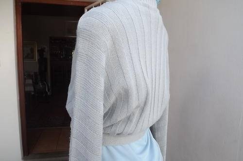 Knitted Acrylic Silver Grey Long Sleeve Bolero in size 14/38-2 straps tie under bustline-good cond