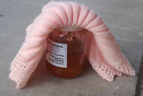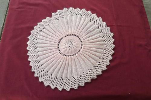 Knitted Peach Doily - 37cm diameter - middle can act as a lid/cover over jars - see scans