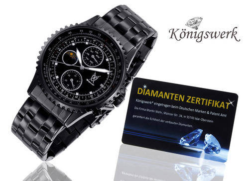 Sporty chic Clock superlative Königswerk with crest logo on the black dial