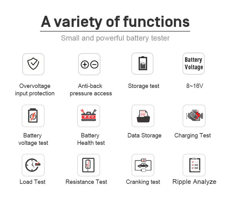 9.Battery test, cranking test, charging test and other additional functions.