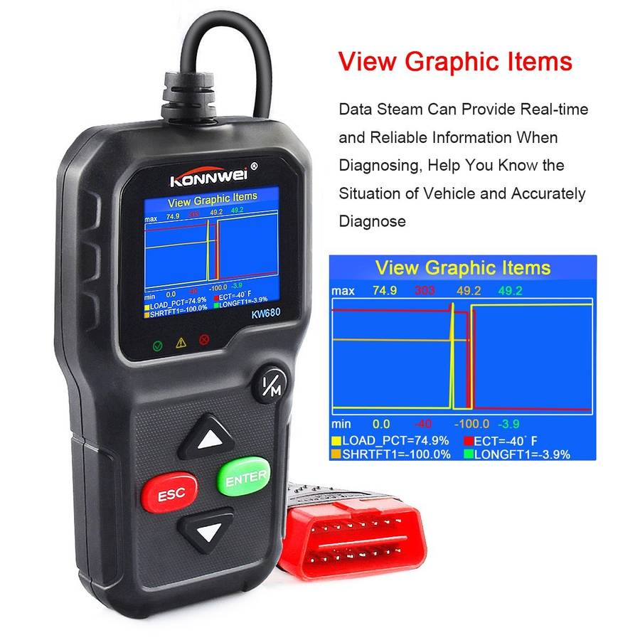Compared with other similar products, KW680 OBD scanner comes with Full OBDII functions, exclusive oxygen sensor and on-board
