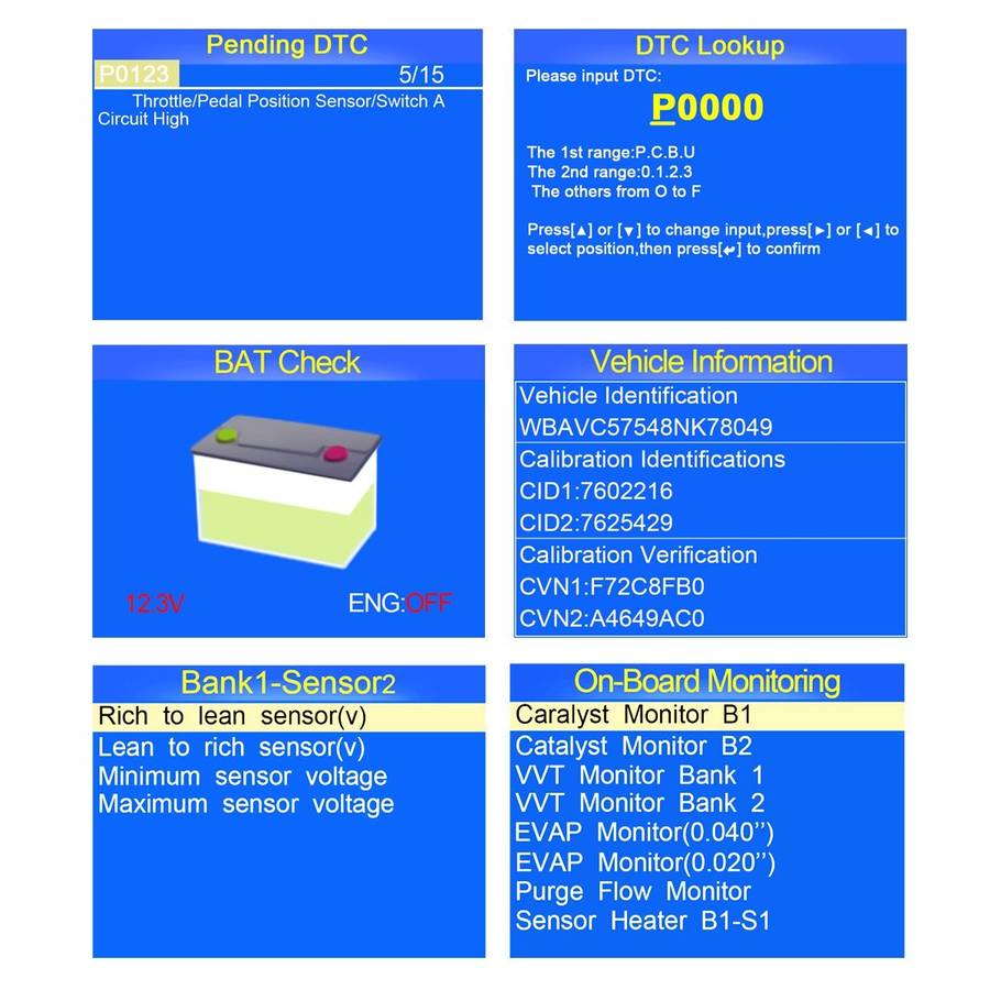 6.O2 Sensor Test. For monitoring and adjust air/fuel mixture,which can identify trouble shooting related to fuel efficiency and vehicle emissions.