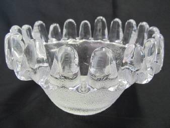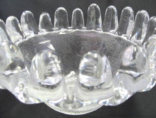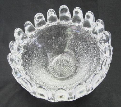 A magnificent Kosta Boda glass bowl, made in Sweden, with identifying label. The bowl is smooth on the inside and textured on the outside. When tapped with a fingernail it produces a superb, prolonged bell-like sound. Condition excellent. Height 110 mm; diameter 180 mm; weight 1.25 kg.