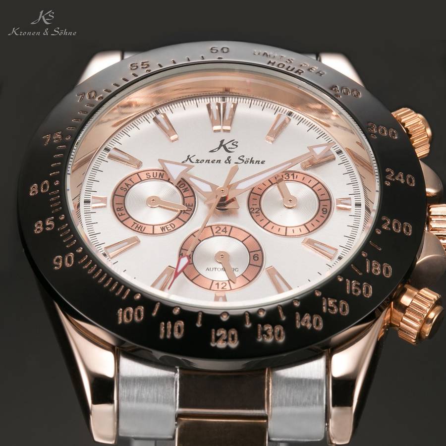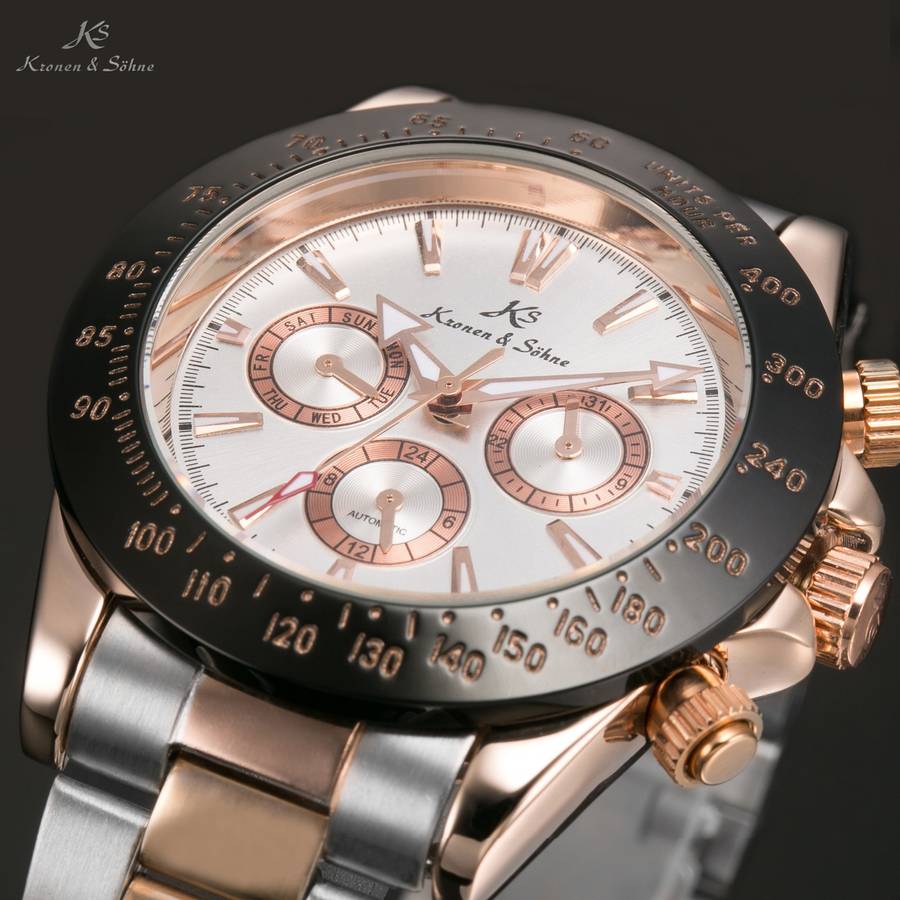 Kronen & Söhne, "KS", was established in 1992 in Germany. KS is endeavoring to craft timepieces that run forever with bold design concepts and fine attention to detail. Perfectly uniting artistic sophistication and reliability, you can expect precision, accuracy and meticulously crafted timepieces from these expert watch masters.