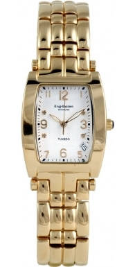 Krug Baümen manufacture their exquisite ladies diamond watches to very high standards using stainless steel, leather, mother of pearl and real diamonds which are brought together to create some stunning timepieces. Krug-Baumen's Tuxedo enhanced with 4 clear single cut diamonds. The tonneaux head feautures exquisite curved mineral glass protecting the elegant gold hands, raised golden numerals, fast adjust date display and the four sparkling diamonds. The watch crown is decorated with an onyx tip for that final touch. Each Tuxedo is presented in it's own wooden display case along with it's 5 year movement warranty documentation and diamond authenticity certificate. As with all Krug-Baumen designs, the Tuxedo is engraved with it's own unique serial number to assure it's legitimate origin.