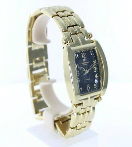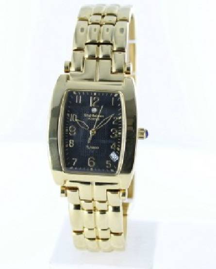 Krug-Baumen's Tuxedo enhanced with a single clear single cut diamond just below the 12 o-clock position. The tonneaux head feautures exquisite curved mineral glass protecting the elegant gold hands, raised golden numerals, fast adjust date display and the single sparkling diamond. The watch crown is decorated with an onyx tip for that final touch. Each Tuxedo is presented in it's own  display case along with it's diamond authenticity certificate. As with all Krug-Baumen designs, the Tuxedo is engraved with it's own unique serial number to assure it's legitimate origin. Original list price £645