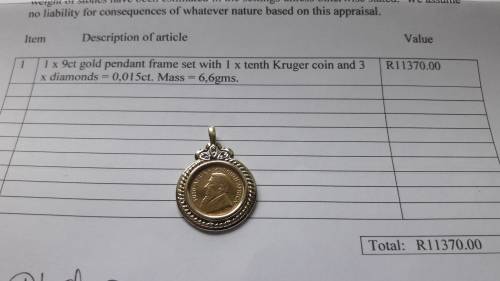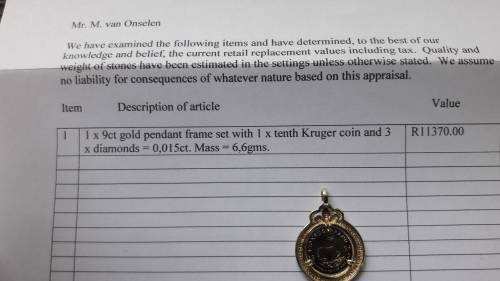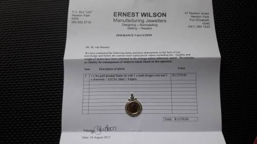 Insurance Valuation included and states replacement value to be R11 370.
