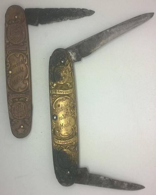 Kruger & De Wet .Eendracht maakt macht. TWO pocket knifes (both differ with details, not the same)
