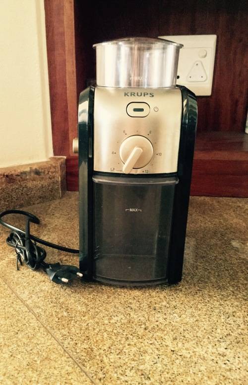 Fineness selector adjusts distance between the two burrs for an accurate coarse or fine grind, according to personal taste and coffee being prepared
