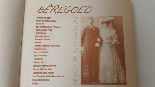 Hierdie boek is meer as net n resepteboek. Dis n reis deur ouma se kombuis en n reis deur ons Afrikaner geskiedenis. Die hele boek is gedruk op sagter papier en al die fotos is in sepia (bruinerige verouderde) kleur gedruk. Daar word ook fotos van ander huisraad soos stowe en strykysters uit die verlede gewys. Ook interessante ou advertensies, boererate (soms nog in ou Nederlands om aan te pas by die verouderde voorkoms van die boek. SOmmige resepte is sommer nog in die handskrif van iemand uit die verlede alles is so nostalgies. Daar is tot n ou storietjie (met n foto) van oom Andries van den Heever van Petrusburg wat so met sy gewig gesukkel het.