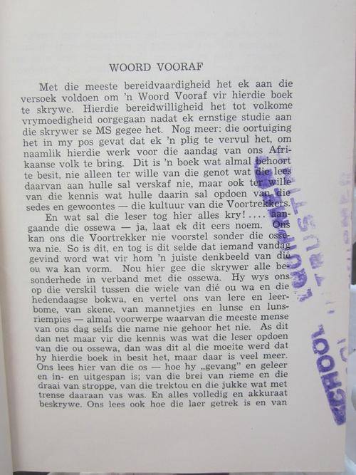 1938 hardband met stofomslag -214 bladsye, die stofomslag is verweer, die hardeband is goed maar die rugkant bo is n klein stukkie verbleik en aan die rugkant onder is daar ook n klein stukkie verbelik, voor in boek is n naam met pen geskryf en daar is n stempel -sien foto onder, die stempel is ook op die bladsye met die voorwoord-sien foto onder, die bladsye met die Retief-Dingaan-traktaat het n baie klein skeurtjie in, die teks is skoon en die binding goed - vir ouderdom in n goeie toestand, versending R30 in RSA- Geen oorsese versending