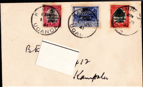 KENYA, TANGANYIKA & UGANDA, 1941. Envelope, browning in front and backView scans for condition as it form part of the description.