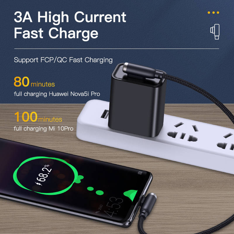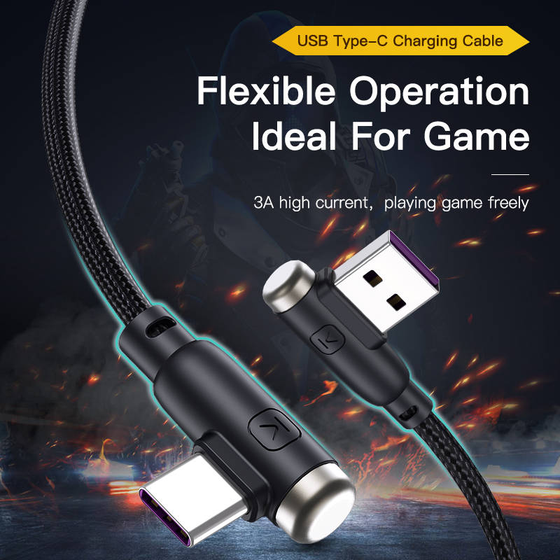 KUULAA L-type 90 Degree Angle Cable Type-C 3A Fast Charging Gaming Data Cable f