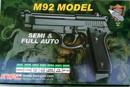 KWC M92 Beretta CO2 Full Metal, Blowback, Semi Auto & FULL AUTO, Shoots 4.5mm steel BBs