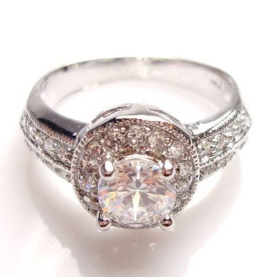 L@@K!!! * 14K White Gold Engagement Ring Size 8 / Q *