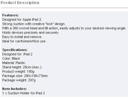 iPad 2 Car Mount Multi Direction Suction Stand - BRAND NEW