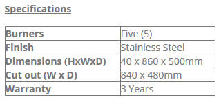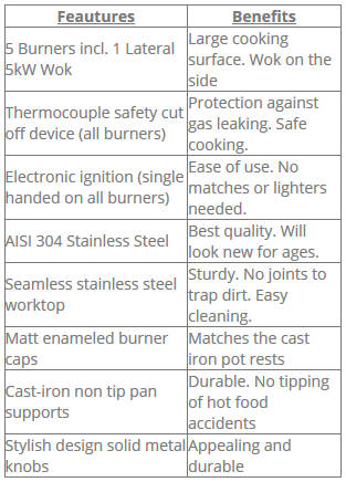 La Germania 90cm 5 Burner Gas Hob incl. 5kW Wok, Ring Pot Stands
