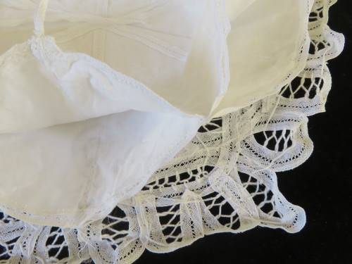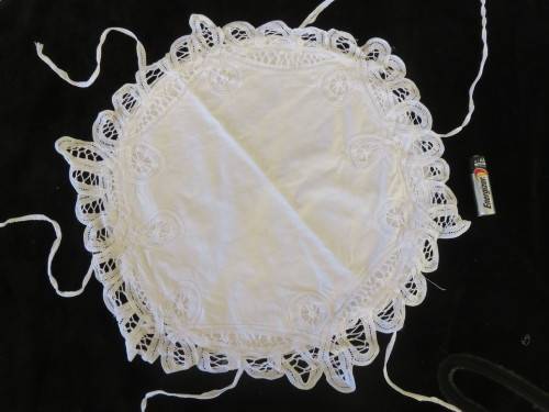 White cotton and lace bread roll or muffin basket. Very good condition.