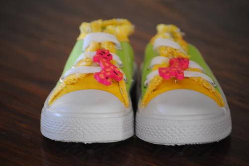 Lace Up Kiddies Shoes with Hand Painted Animal Safari and Bead Work Size 8