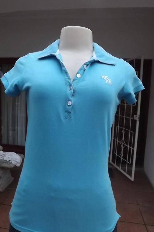 Ladies Abercrombie golf shirt with cap sleeves in blue.Size 32/8.100% Cotton.Good condition