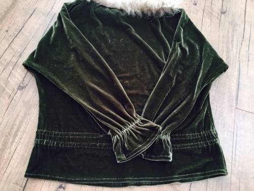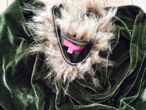 Ladies Beautiful Fashion Army Green High Quality Velvet With Brown Fur Round Collar Shirt