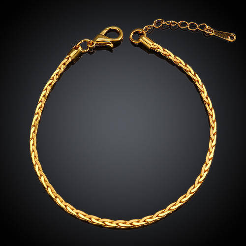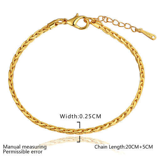 Ladies elegant plain design link bracelet in 18K RGP yellow gold, with extender chain for adjustment