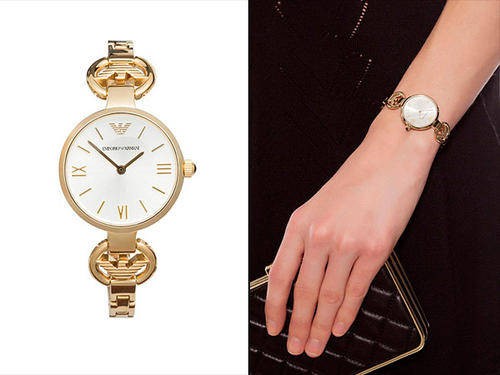 Official Emporio Armani Presentation Packaging Watch Movement: Quartz Analogue Dial Colour: White Crystal/Glass Type: Mineral Crystal Glass Case Material: Stainless Steel Case Shape: Round Case Width: 28mm Case Depth: 7.5mm Strap/Bracelet Type: Stainless Steel Clasp Type: Fold Over Clasp Water Resistance Depth: 30 metres Water Resistance: Splashproof Gender: Ladies Colour: Gold Style: Emporio Armani Retro Model Ref: AR1774 Packaging:
