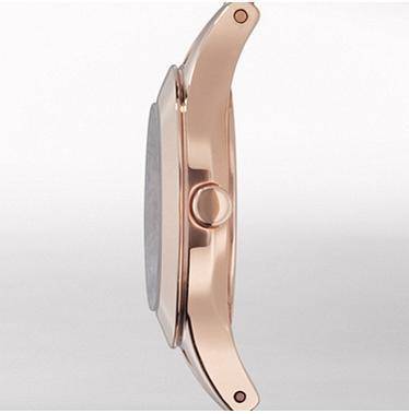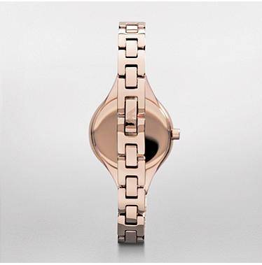 The perfect little evening watch, this style features a rose gold-tone stainless steel case and mesh bracelet. A mother of pearl dial adds an elegant finishing touch.