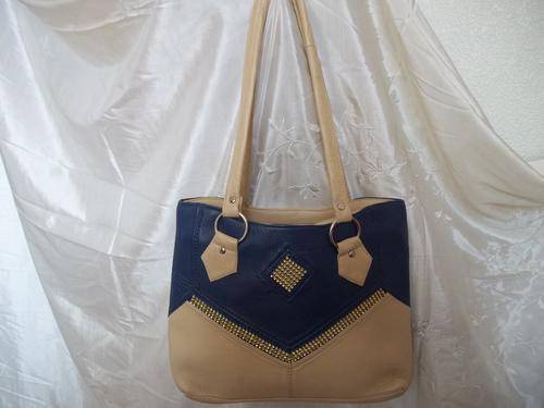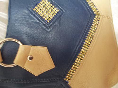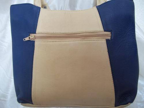 GENUINE LEATHER HAND BAG IN A NAVY BLUE AND CREAM