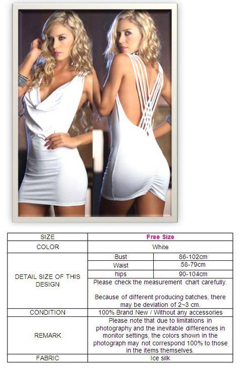 Ladies Ice-Silk Low Cut Sexy Club Dress - White