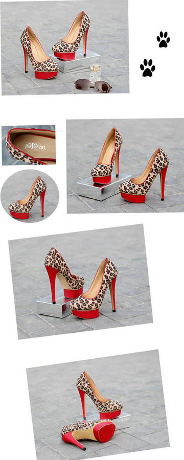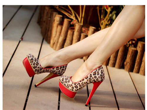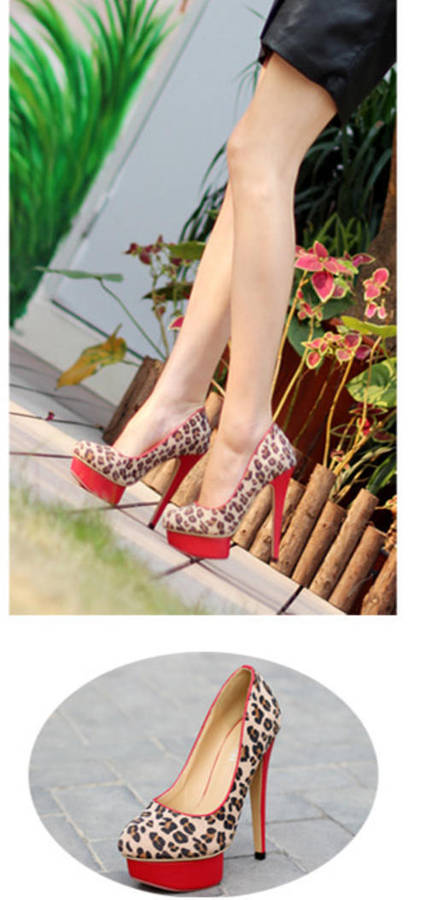 Ladies leopard print pumps with red block platform