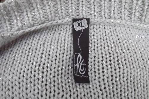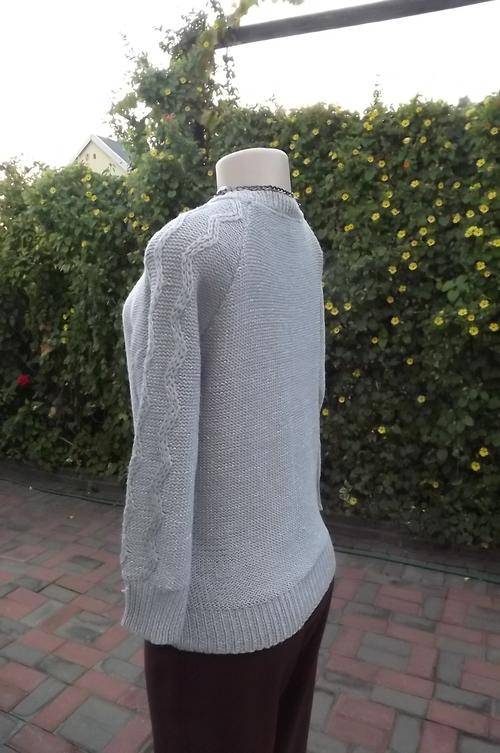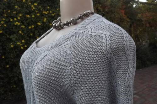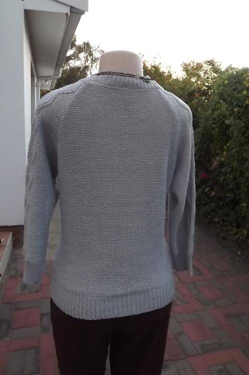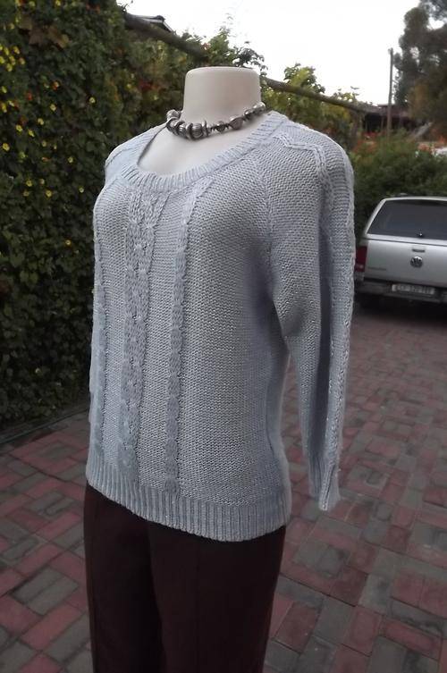 Ladies RT acrylic knitted silver grey sweater with glitter thread size 32/8.Cable stitching on front