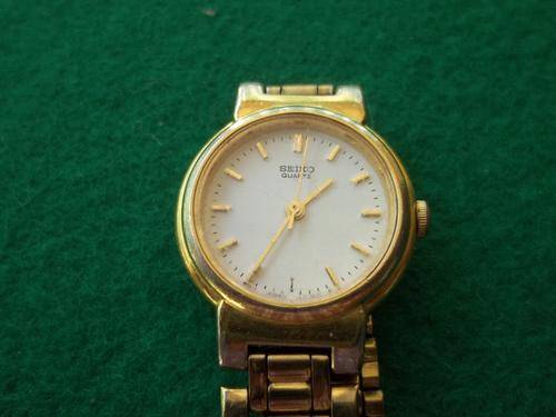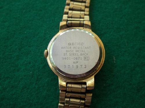 Ladies Seiko watch inscribed on the back as seen from image above. Has a stainless steel Seiko-B watch strap. Few scratch marks on glass & some rugging on straps clasp but otherwise in good order and working. Bonus new battery put it. Postage RSA R45.00 incl insurance