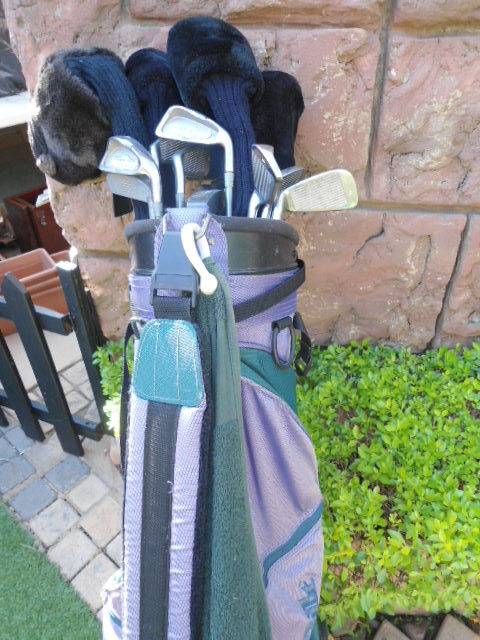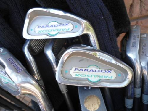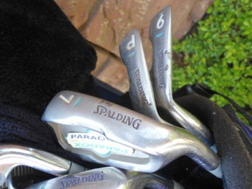On offer is a very nice Ladies set of Spalding Paradox golf clubs with graphite shafts, and includes "stow a cart'