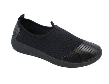 Quilted fabric upper with PU toe cap, slip-on style for easy on/off. Rubber Sole