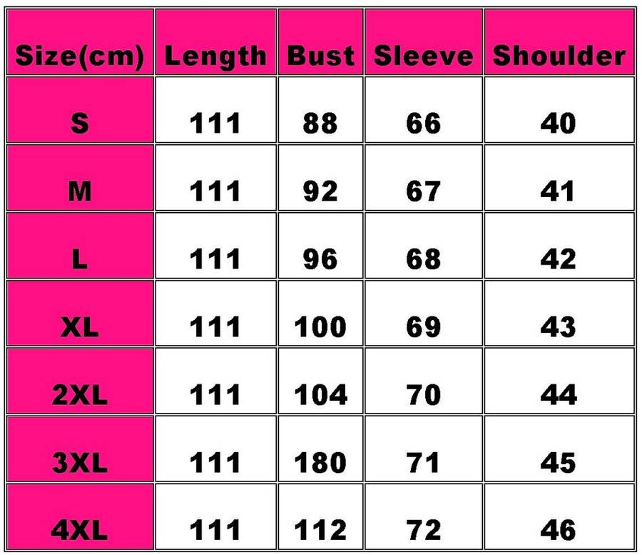 About Size: There may be a difference of +/- 3cm/1.5-inch due to hand measurement. These measurements are meant as a guide to help you select the correct size. Please take your own measurements and choose your size accordingly.