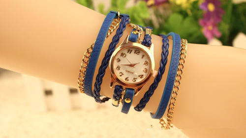 Bracelet watches are beautiful and in fashion. This won't serve you only a s a watch it can double as bracelet. the braided part is lake blue in colour