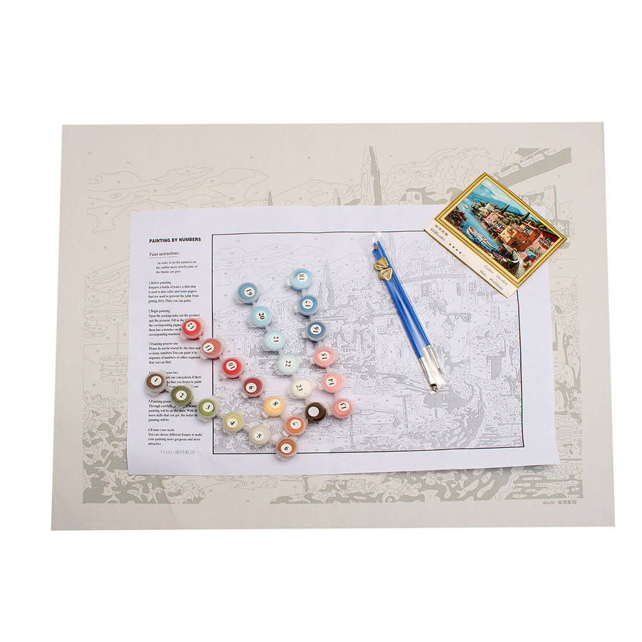 Lakeside Numbers Kit DIY Painting Oil Painting Villa Pictures Frameless Canvas