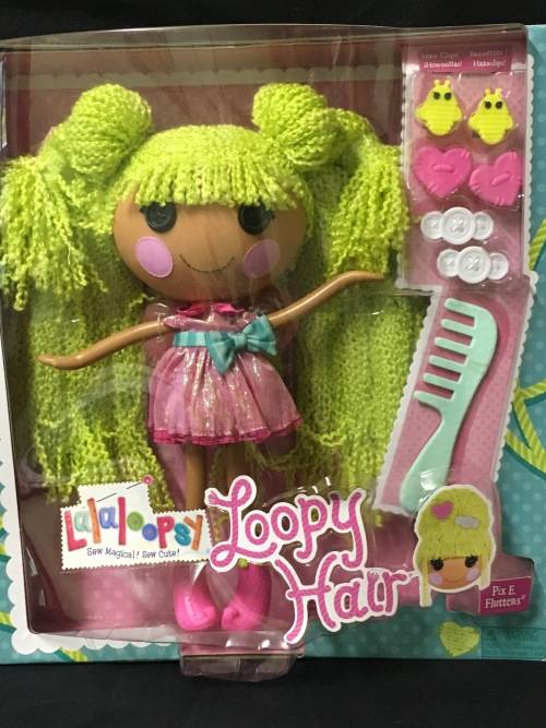 This is a 30 cm Lalaloopsy Pix E. Flutters doll with hair that you can style.  She is brand new in her original packaging.
