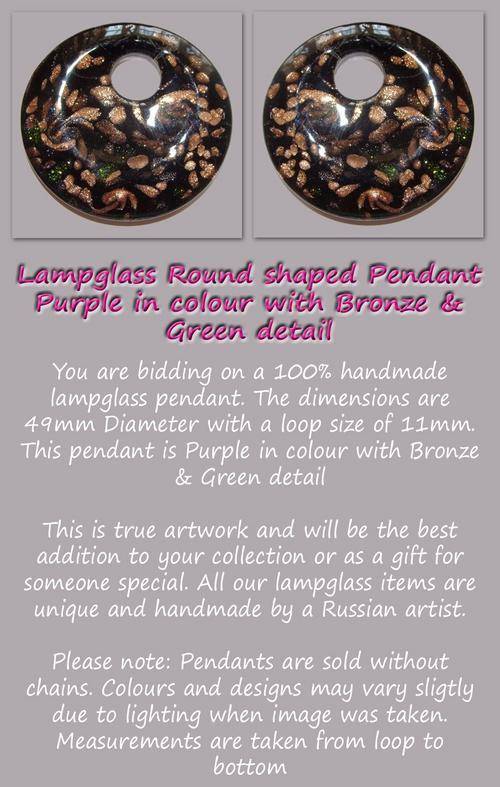 Lampglass Round shaped Pendant Purple in colour with Bronze & Green detail