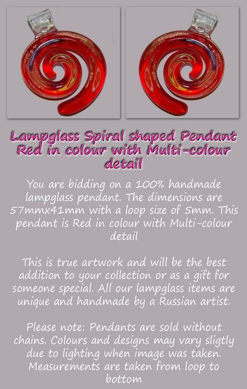 Lampglass Spiral shaped Pendant Red in colour with Multi-colour detail