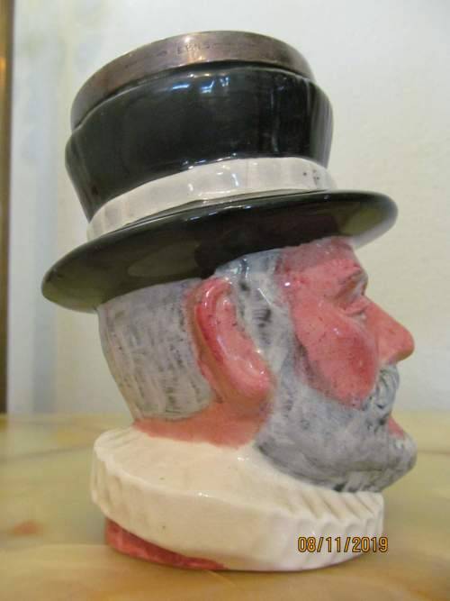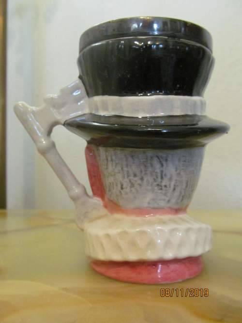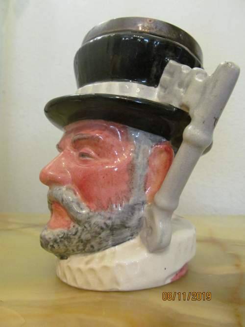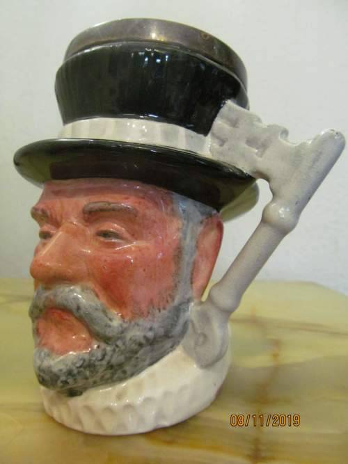 THIS ITEM WAS MANUFACTURED IN 1953 AND DEPICTS A CERAMIC CHARACTER MUG / TANKARD WHICH IS KNOWN TO HAVE BEEN MODELLED AND DESIGNED BY T.H SANDLAND DURING THE EARLY 1940's UPON ITS FIRST RELEASE. THE ITEM IS GENERALLY KNOWN AS A TOBY CHARACTER MUG AND IS FITTED WITH A SILVER PLATED RIM ATTACHMENT. THIS VERSION OF THE TOBY MUG IS - "YEOMAN OF THE GUARD" (THE YEOMAN OF THE GUARD IS OFFICIALLY CONSIDERED THE QUEENS BODYGUARD, CREATED IN 1485)