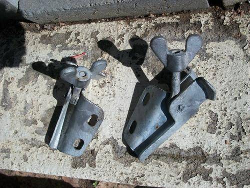 This is a pair of fasteners to attach the windscreen to the bulkhead of a Series 1 Land Rover. They have been galvanised, so NEED REFURBISHING! THE NUT AT THE TOP NEEDS TO BE REMOVED AND THE GALVANISING CLEANED UP AND RE THREADED!