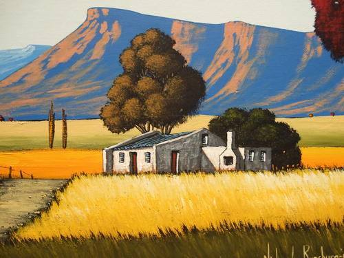 His first landscapes were done using the name “LaWaai”. At the moment he paints, using his own name – a very colorful scene, originally with a very strong Tuscan influence, but it developed into a South African landscape.