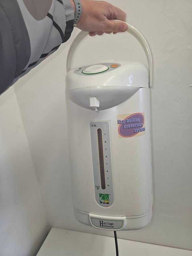 Large 4L Electric water boiler/warmer with push-button dispensing system. Rotates 360°. Perfect cond