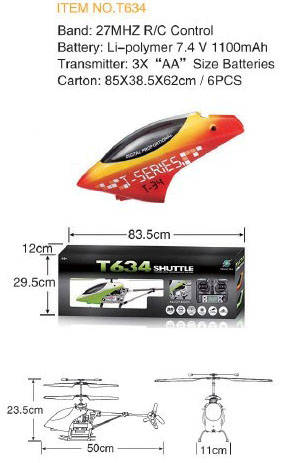 T634 helicopter is probably the most durable and safe RC helicopter we have experienced to date. It is amazingly robust and easy to fly. It has a real presence. The LCD transmitter makes setting up the trims much easier and helps to keep the helicopter very stable in flight.